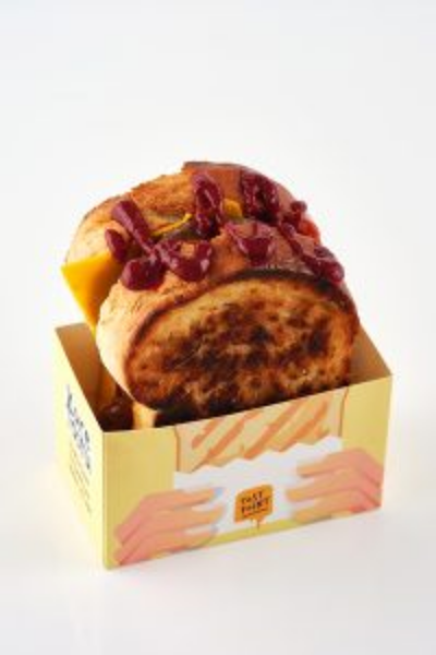 Shokuban Ekmeği, Orman Meyveli Tost, Sweet Chili Sos, Smash Köftesi, Cheddar Peyniri, Kornişon Turşu.