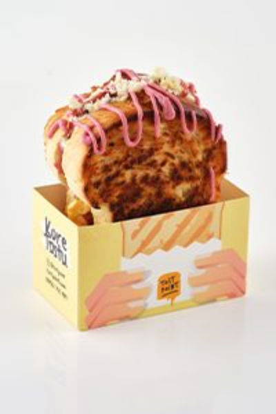 Shoukuban Ekmeği; Hot Sos, Yoğurtlu Mor Lahana, Cheddar Peyniri, Kornişon Turşu, Tavuk Kajun.